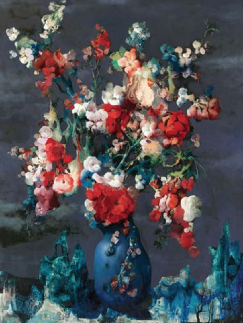 Chaque tableau est une variation : Tantôt un bouquet surgit d’un imaginaire flamboyant, comme une explosion de couleurs jaillies de l’inconscient. Tantôt, une simple rose blanche devient une ode à la pureté, baignée de lumière et de silence. Ou encore, les compositions florales se déploient dans un décor classique, rappelant les fastes des natures mortes anciennes, où chaque pétale, chaque papillon semble murmurer une histoire oubliée. Ces fleurs ne sont pas seulement peintes : elles sont vécues, ressenties, transfigurées. Elles invitent le spectateur à s’arrêter, à contempler, à respirer le temps suspendu. Car peindre des fleurs, c’est peindre la vie elle-même : fragile, éclatante, toujours renaissante.